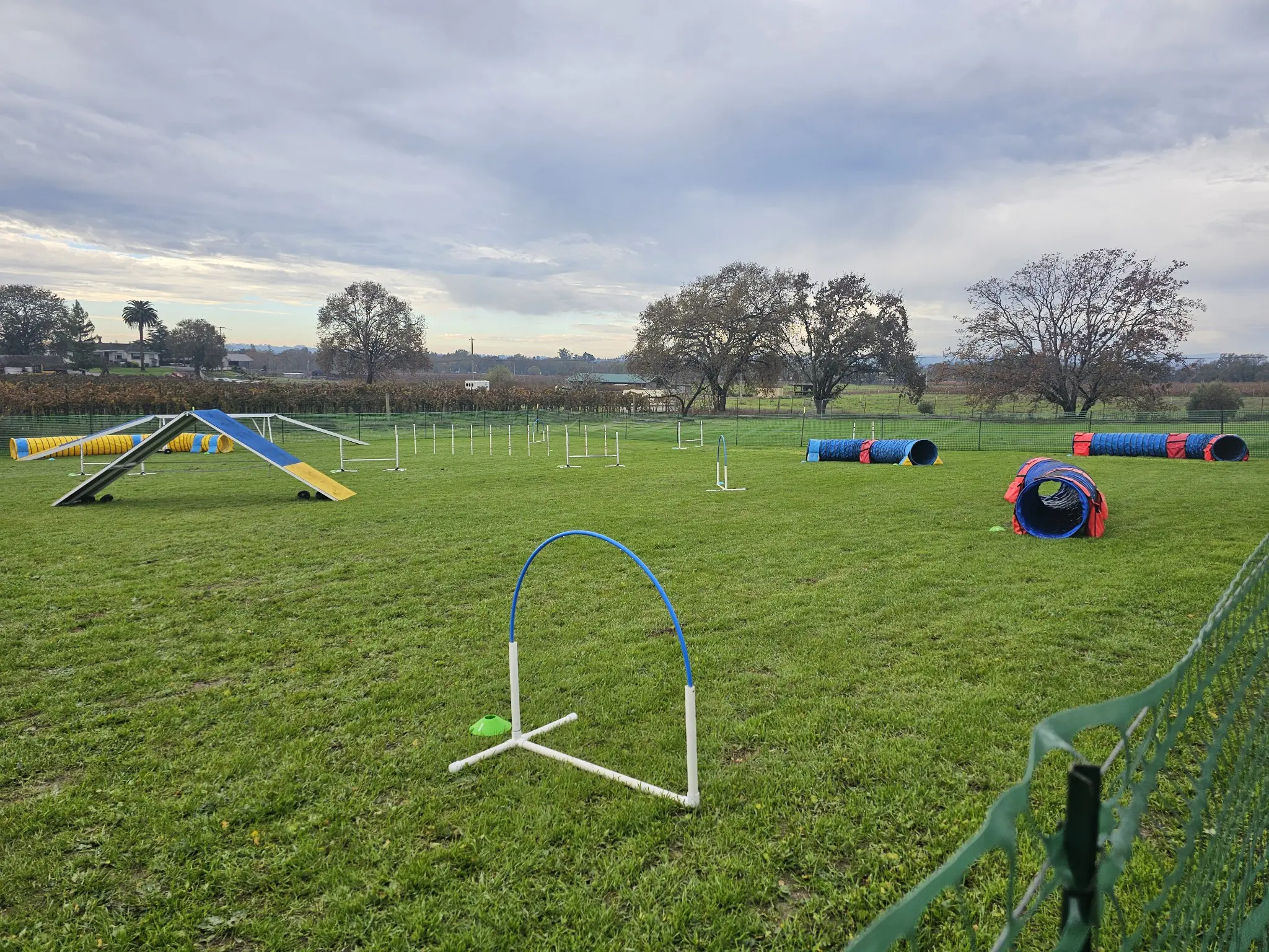 Nestled at the rear of our property, the Agility Field is surrounded by beautiful vineyards on three sides, ensuring a distraction-free environment.
